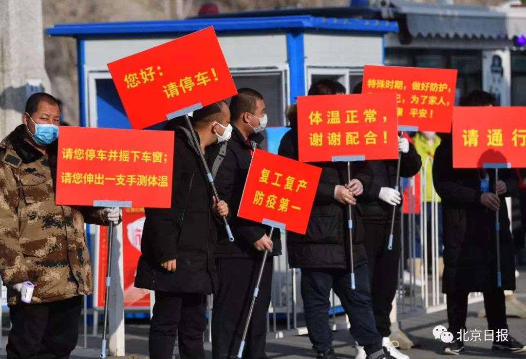 2月10日,在北京朝陽區(qū)高碑店鄉(xiāng)半壁店村西店社區(qū),黨員們志愿者們高舉提示牌“溫馨無聲”提醒進(jìn)入人員進(jìn)行檢查。
