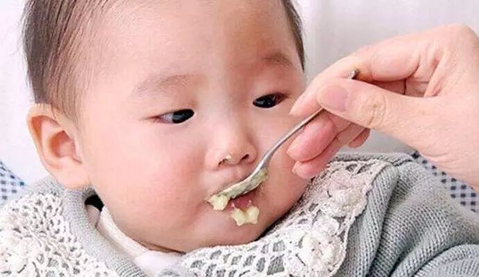 答:剛給寶寶加輔食時,不能太稀也不能太稠。泥攪拌均勻后,用小勺舀起、傾斜時,食物可以一坨一坨地滴下,這樣的程度是比較適合剛加輔食的寶寶的。