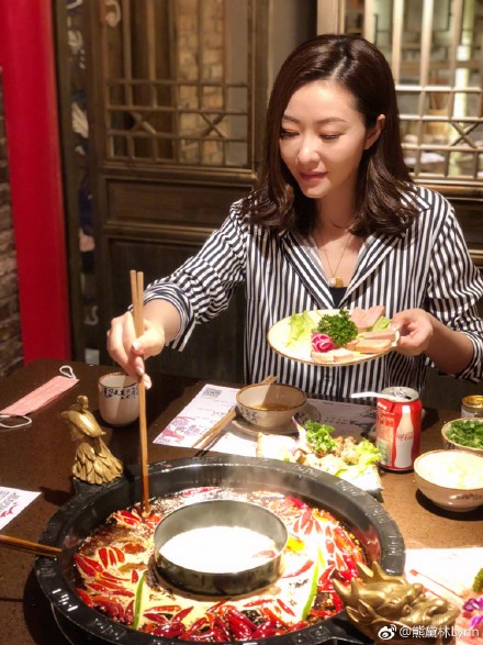 國慶前一天,熊黛林還在成都工作吃火鍋,曬的照片也是火辣辣。